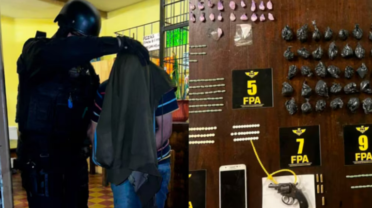 Durante el registro en el local y domicilio del sospechoso, los agentes hallaron 540 dosis de cocaína, 292 de marihuana y 194 comprimidos de psicofármacos. También fueron secuestrados un revólver calibre .22 con cinco cartuchos, dinero en efectivo cuya suma no fue revelada y elementos de corte y fraccionamiento, en línea con lo consignado por la FPA.