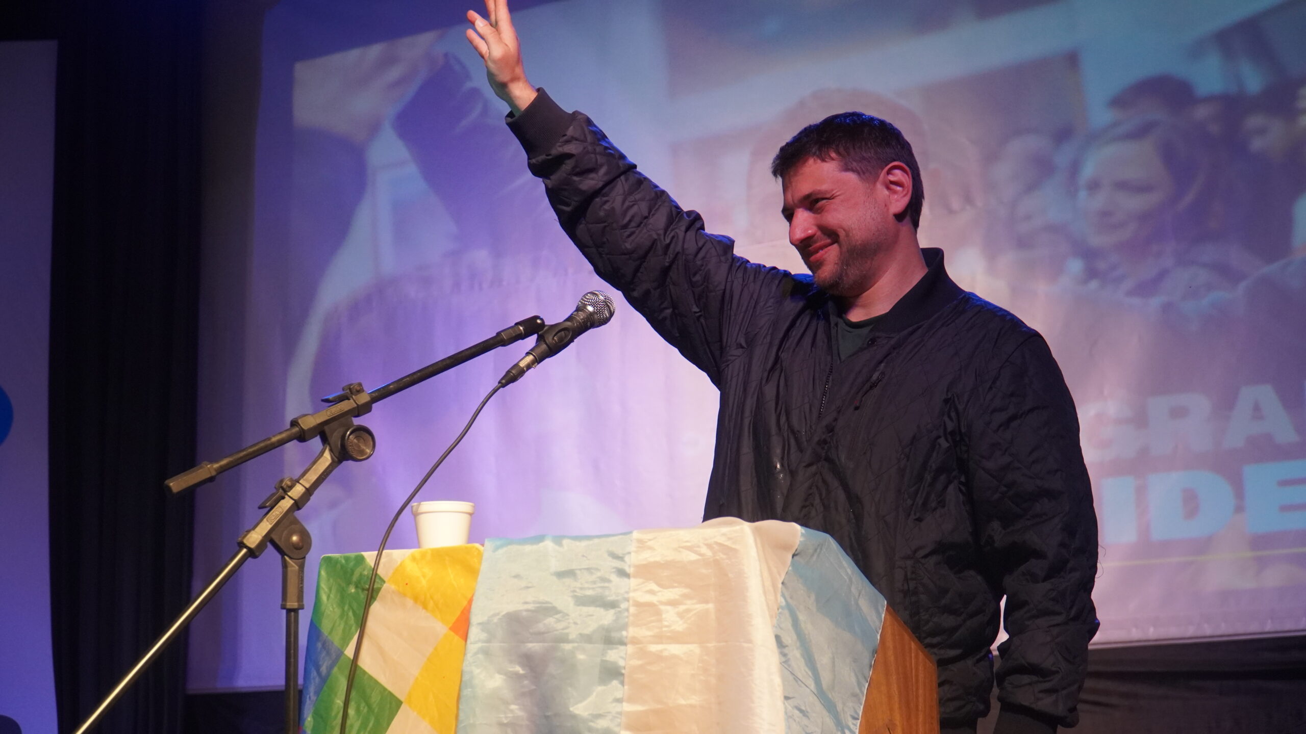 El precandidato por Unión por la Patria, Juan Grabois, estuvo presente en Merlo. En el Teatro Municipal, con la presencia de la intendenta, Karina Menéndez; y la precandidata a diputada por la Provincia de Buenos Aires, Roxana Monzón, el militante de las causas populares tuvo un discurso que duró más de una hora.