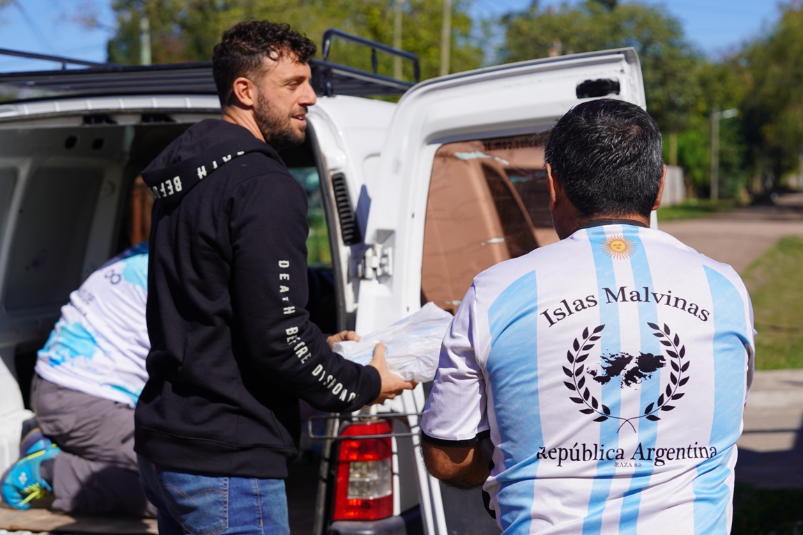 La mercadería se entregó en el comedor del “Padre Paco”, el merendero “Una estrella para Ariel” y el Comedor “Esperanza” de Mariano Acosta, con la participación de los veteranos que fueron presencialmente a cada lugar.