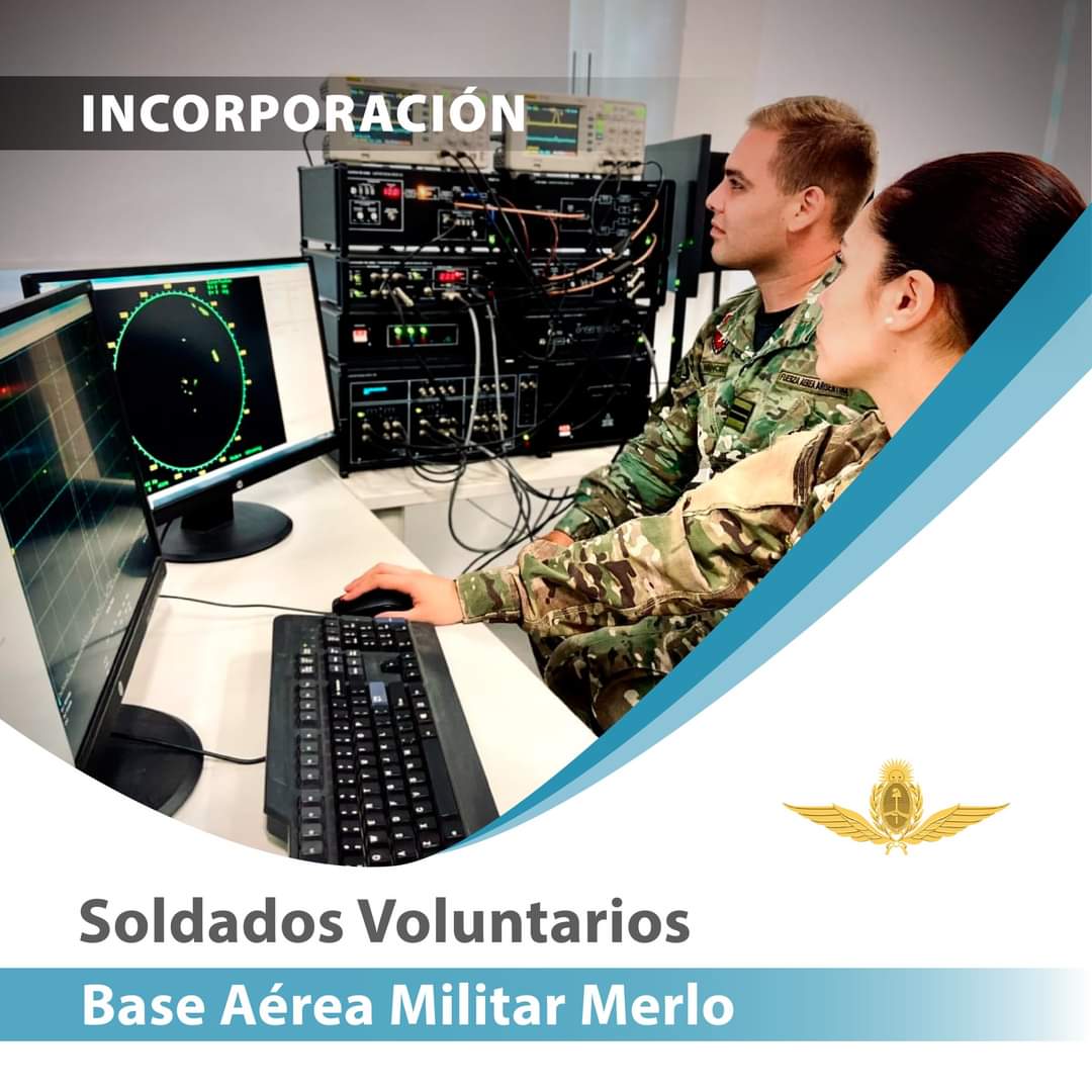 La Base Aérea de Merlo realizó una convocatoria, a través de sus redes sociales y otros medios de comunicación, para incorporar Soldados Voluntarios Técnicos Electrónicos, electro mecánica y técnicos en radio o comunicaciones.
