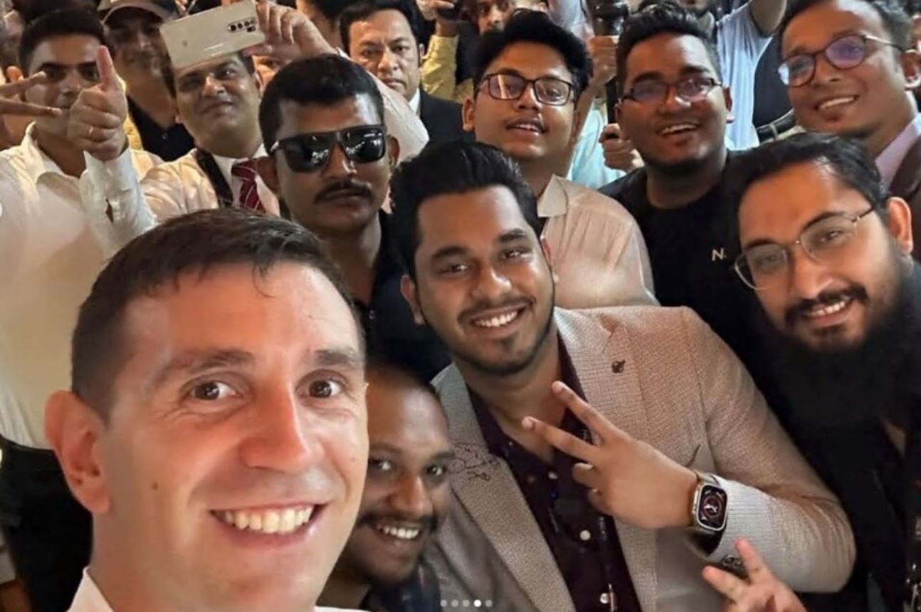 La llegada del Dibu al país asiático causo un gran entusiasmo en los fanáticos, el argentino se vio este fin de semana interactuando con centenares de hinchas y se entrevistó con la primera ministra del país, Sheikh Hasina.