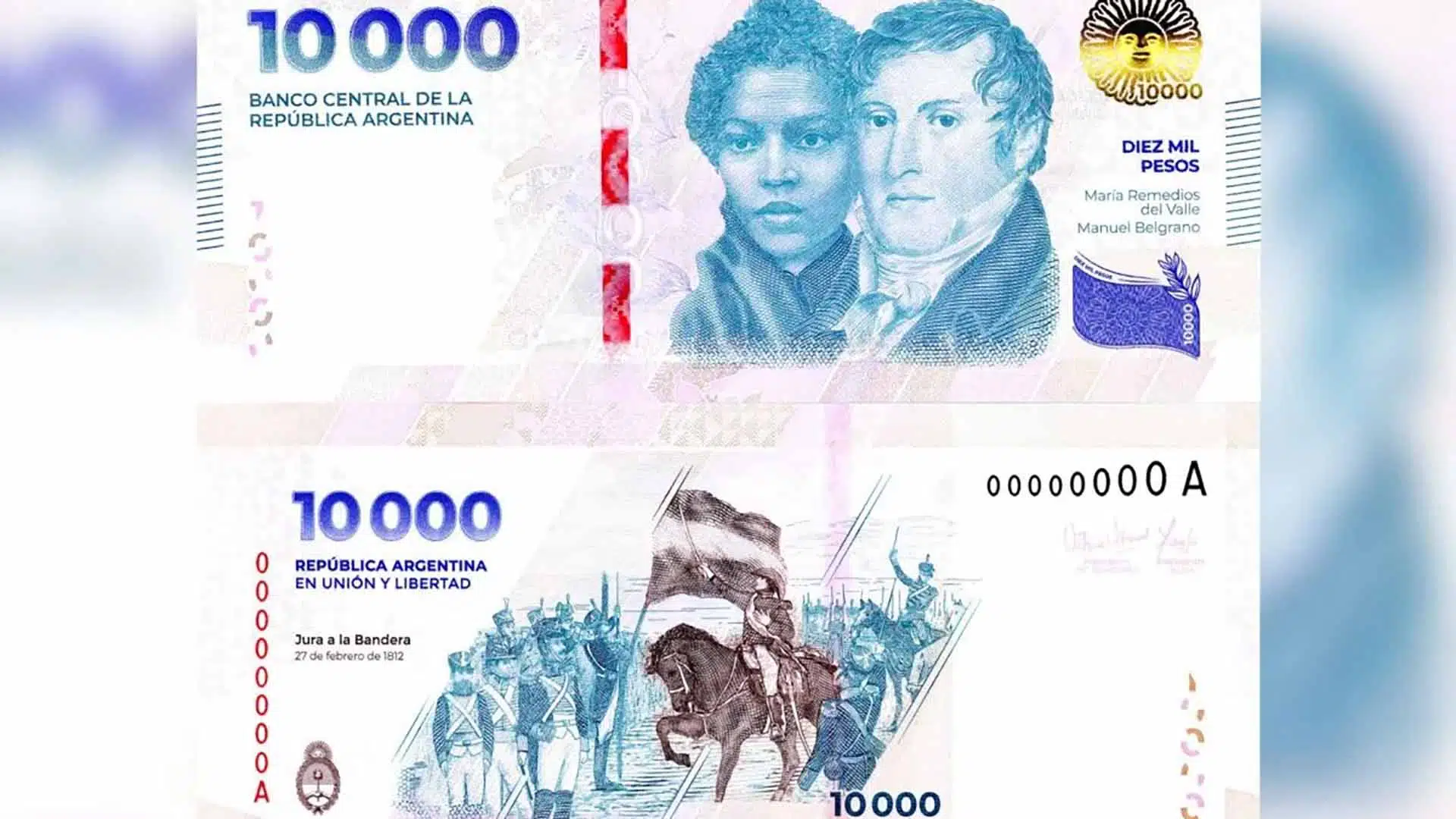 En el frente, el nuevo billete de $10.000 tiene los rostros de Manuel Belgrano, abogado y luego general del Ejército del Norte, y María Remedios del Valle, una mujer afrodescendiente nacida en Buenos Aires que fue auxiliar militar en las Invasiones Inglesas y luego combatió en el Ejército del Norte.